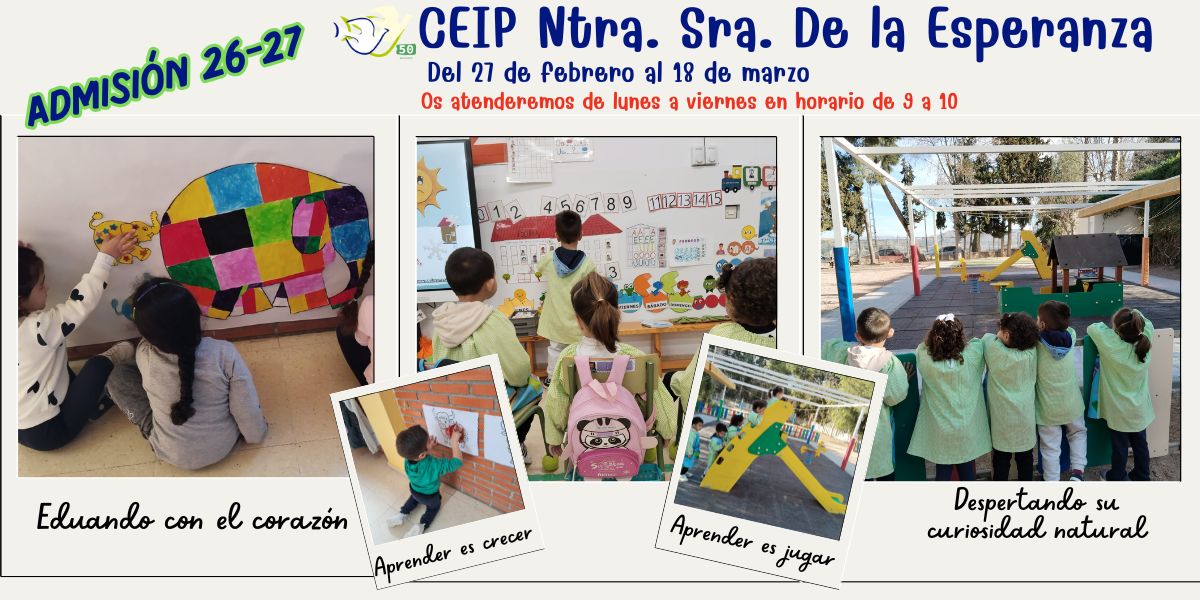 El plazo de admisión para el próximo curso escolar estará abierto desde 27 de febrero hasta el 18 de marzo.