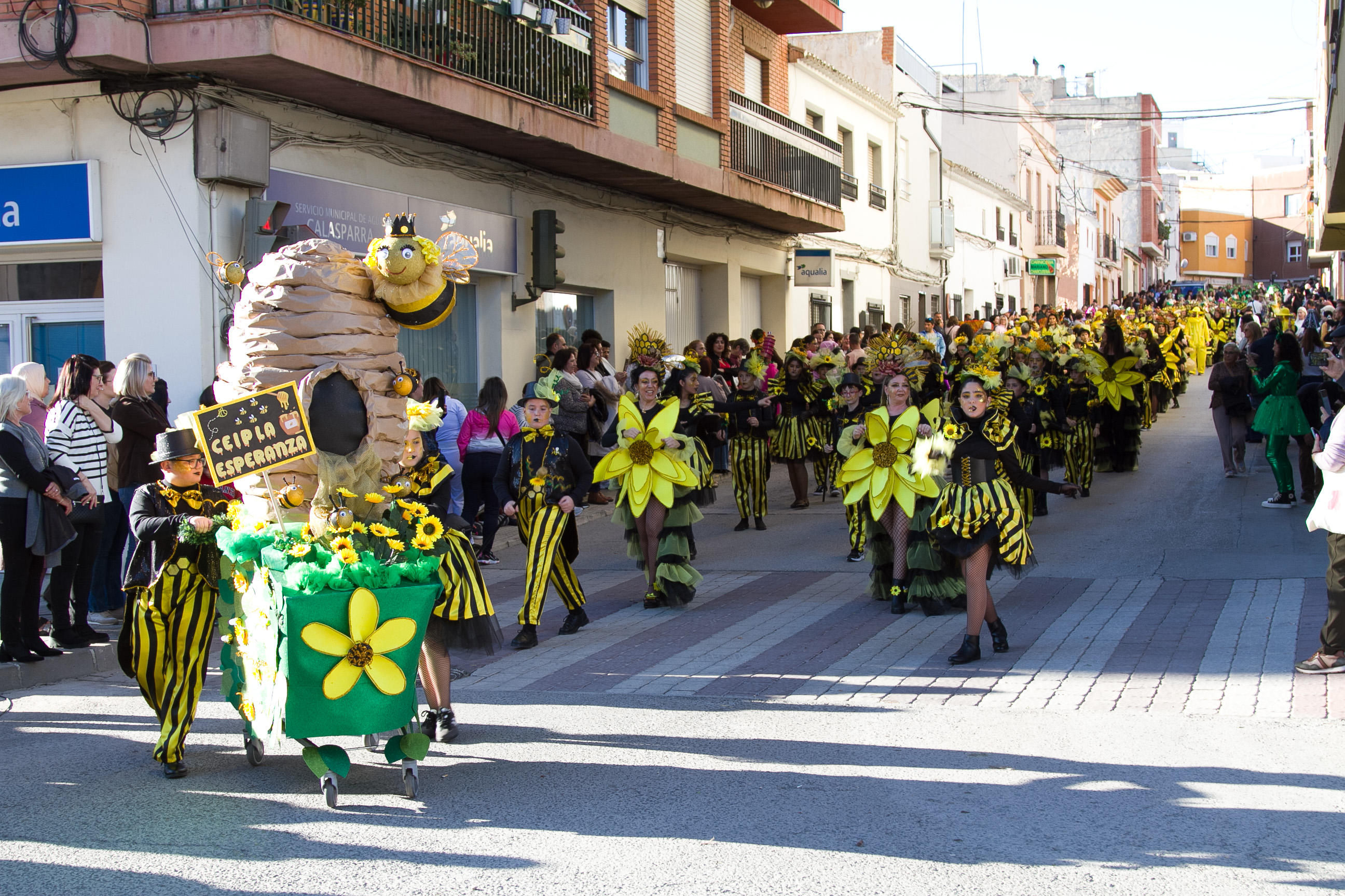 Ayer martes 17 las abejas de la Esperanza polinizaron las calles de Calasparra con un alegre zumbido al ritmo de la música de carnaval en la fantástica tarde de la que pudimos disfrutar después de tantos días de lluvia y viento.