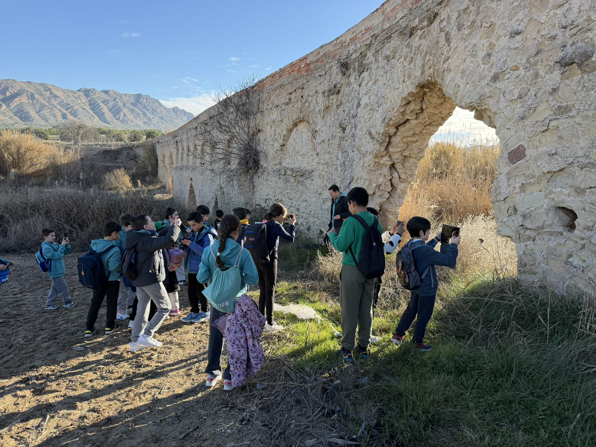 De regreso, realizamos una parada para almorzar en el puente sobre río Argos en el cruce entre el diseminado Eras y el camino de La Piñera y otra, justo antes de regresar al colegio, en la plaza de la Corredera.