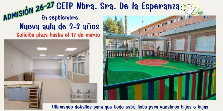 Os recordamos que el plazo para solicitar plaza en cualquier curso, incluido el de 2 años, estará abierto hasta el miércoles 18 de marzo.