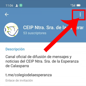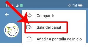 Si te unes accidentalmente a un canal que no deseas o si ya no necesitas estar (por ejemplo, por cambio de centro) puedes abandonar pinchando en el menú de tu móvil y elgiendo la opción correspondiente:
