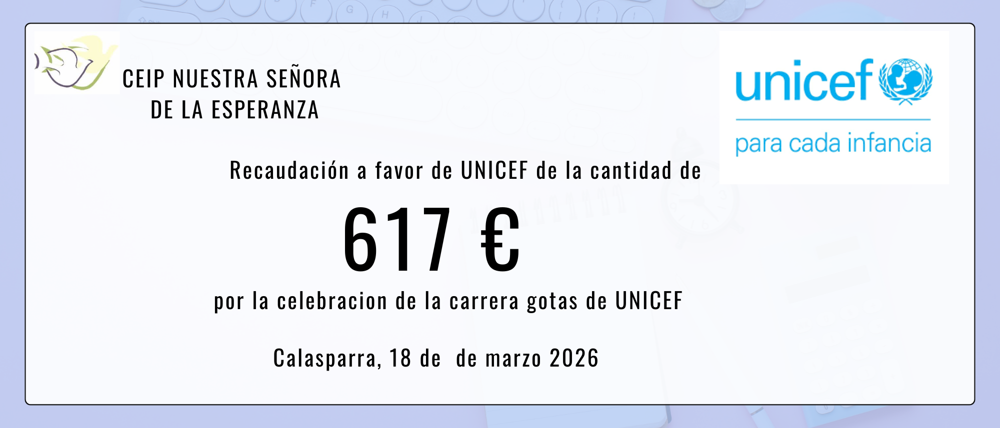 Este 18 de marzo el colegio Nuestra Señora de la Esperanza ha vivido una jornada llena de alegría, deporte y solidaridad con la celebración de la Carrera Gotas de UNICEF. Nos hemos desplazado a las pistas de atletismo municipales donde, gracias al Ayuntamiento de Calasparra, hemos disfrutado de la carrera.